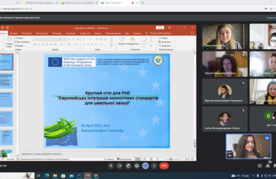 05 квітня 2023 року на Факультеті екологічної безпеки, інженерії та технологій Національного авіаційного університету, відбулося засідання круглого столу для здобувачів освітньо-наукового ступеня PhD під назвою «Європейська інтеграція екологічних стандартів для цивільної авіації». Даний захід було організовано в рамках виконання проекту «European Integration of Environmental Standards for Civil Aviation in the context of Sustainable Development» № …