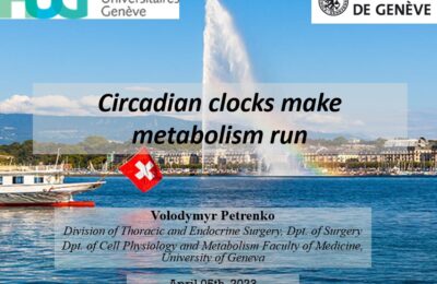 5 квітня в рамках міжнародного співробітництва на кафедрі біотехнології ФЕБІТ відбулася лекція – семінар за участю лектора Петренко Володимира Андрійовича, к.м.н., провідного наукового співробітника університета Женеви, медичного факультету, відділу фізіології та метаболізму; госпіталю університету Женеви, відділу хірургії, ендокринної і торакальної хірургія. Лекція була присвячена біологічним ритмам в живому організмі. У лекції – семінарі прийняли участь студенти та викладачі. Кількість учасників склала 85 осіб.