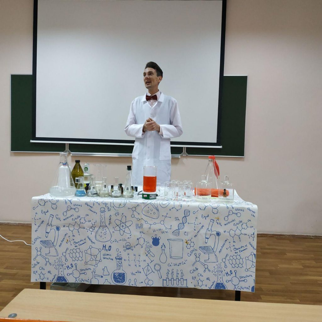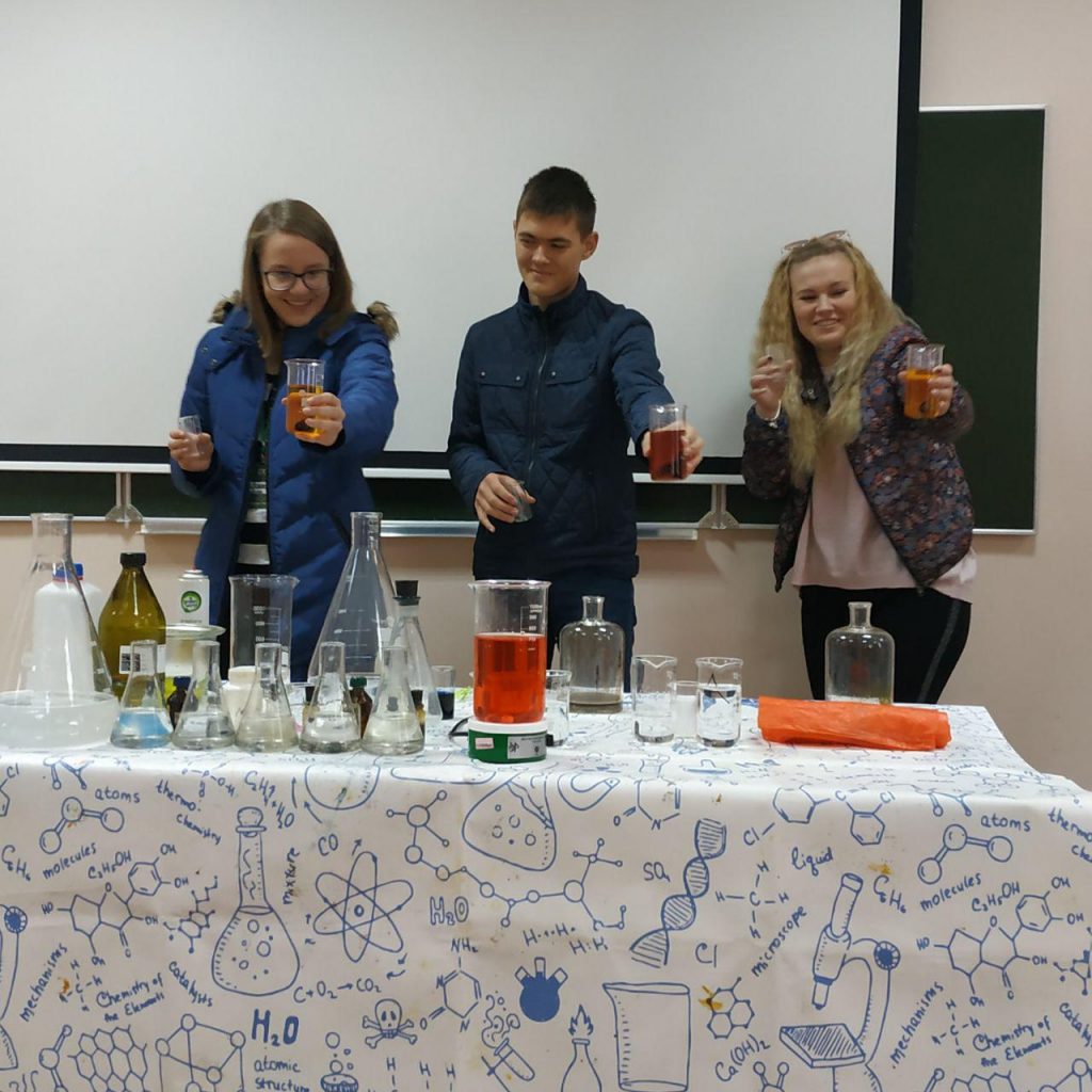 Before the professional holiday of chemists only a matter of days, and to whet interest in the subject at the Department of Chemistry and Chemical Technology FEBIT of NAU took an interesting career-oriented event. Within hours of assistant department Sergey Primachenko scientific experiments showed that the students can see this only in yutubi. The transformation taking place within minutes, causing the beat and capture the audience. Most often, when their performance could hear the phrase: “What is ???” “Very easy, just need to have a sound theoretical basis and learn the laws of chemistry” – responsible professor. In the photo, students and teachers of school 175 m. Kyiv, aerospace Lyceum NAU, Kyiv Military Lyceum named after Ivan Bohun. Now they know exactly what is where in NAU teach chemistry and your friends know? Share in social networks and news Get involved official pages of chemistry at FB https://www.facebook.com/HHTNAU1933 Instagram https://www.instagram.com/hhtnau