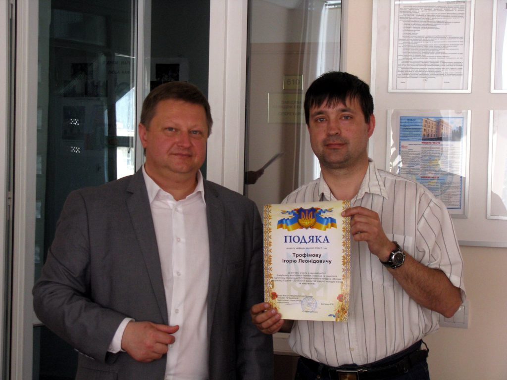 Thanks Dean FEBIT for active participation in scientific work awarded