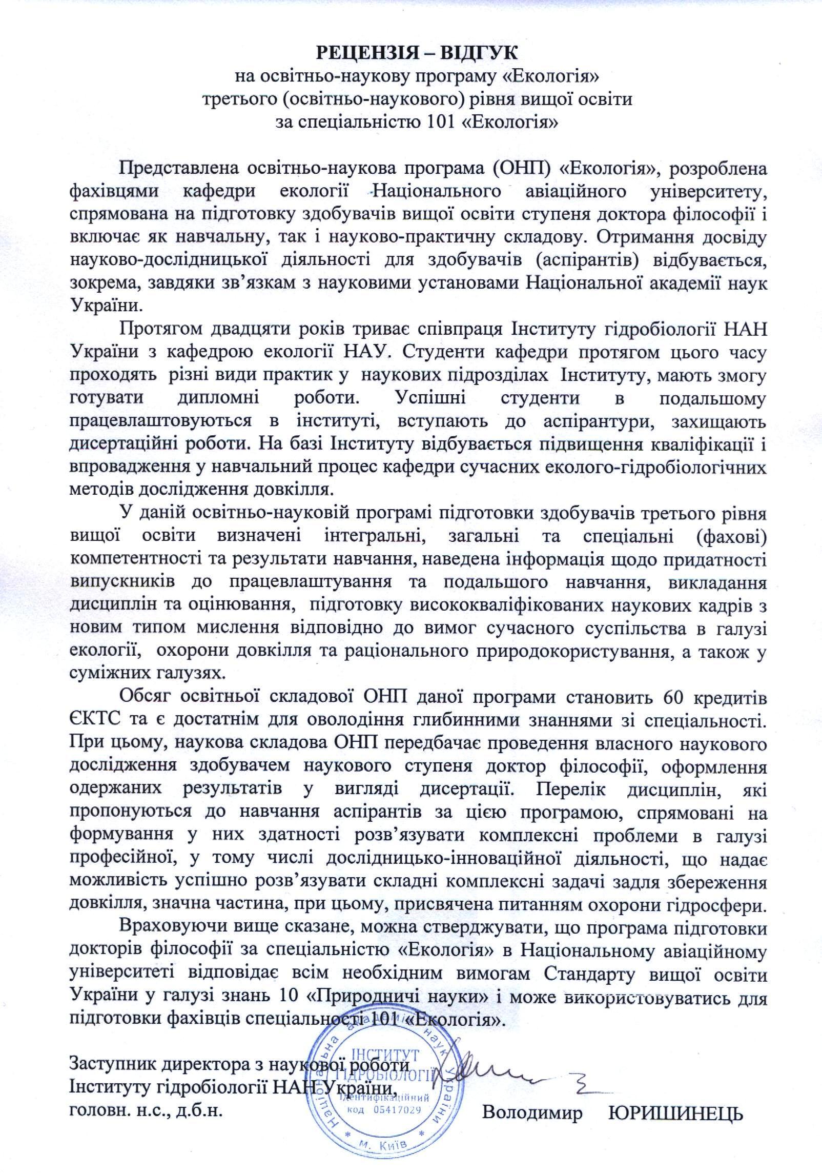 Освітньо-наукова програма Ph.D. (спеціальність 101 “Екологія”)