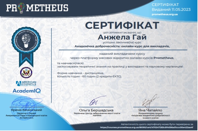 1. Національна Академія педагогічних наук України ДЗВО «Університет менеджменту освіти» Центральний інститут післядипломної освіти 10.02.2020-11.09.2020