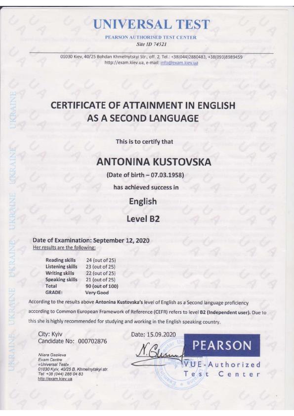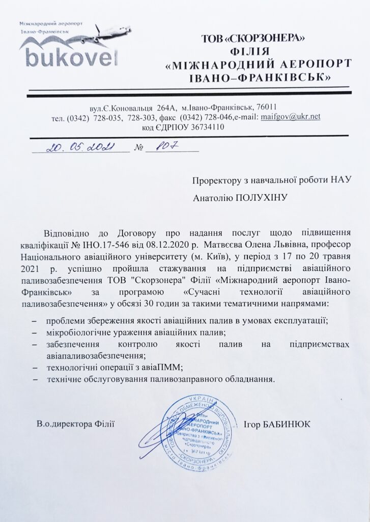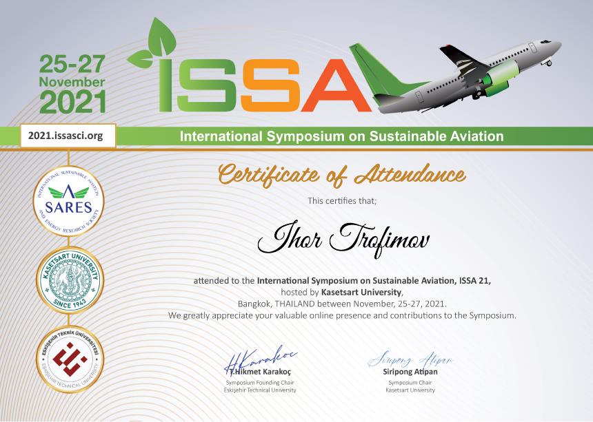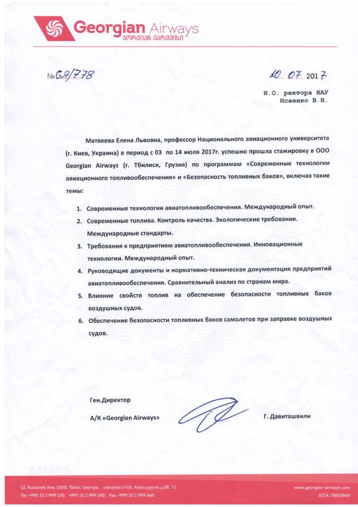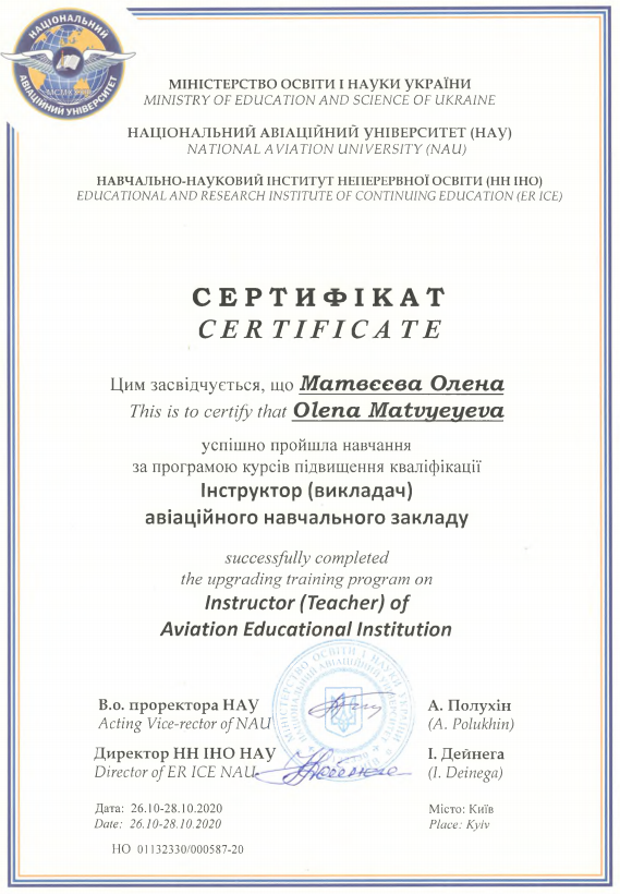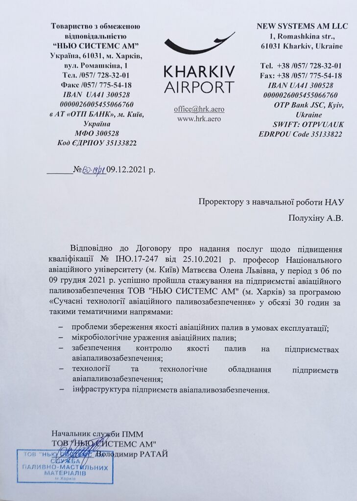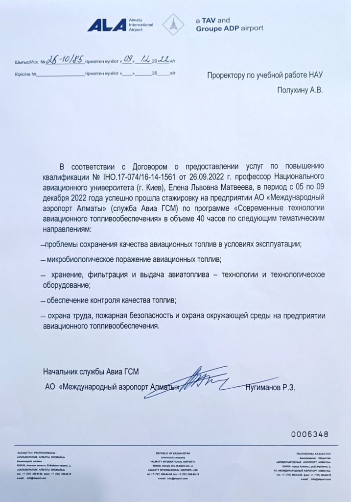 Участь к.т.н. Трофімова І.Л. у Міжнародній конференції “Трансбалтика”Міжнародне стажування к.т.н. Трофімова І.Л. за темою “Сталий розвиток на сучасному транспорті”Участь к.т.н. Трофімова І.Л. у міжнародній конференції “Проблеми хіммотології”, м. париж, ФранціяУчасть здобувача вищої освіти Бошкова Висиля у міжнародній конференції “Наука – майбутнє Литви”, м. вільнюс, ЛитваУчасть аспірантки Колмикової Н.Г. у Міжнародній науково-технічній конференціїУчасть доц. Трофімова І.Л. в міжнародному авіаційному симпозиуміМіжнародне стажування проф. Матвєєвої О.Л. за кордономУчасть проф. Матвєєвої О.Л. в міжнародній конференціїУчасть Аспірантки Вовк Юлії в міжнародній конференціїУчасть аспіранта Зінченко Руслана в міжнародній конференціїМіжнародне стажування доц. Трофімова І.Л. за кордономСертифікат доцента Єфименка В.В. на знання англійської мови “В2” Стажування доцента єфименка В.В. за кордономСертифікат Кустовської А.Д. на знання англійської мови “В2”