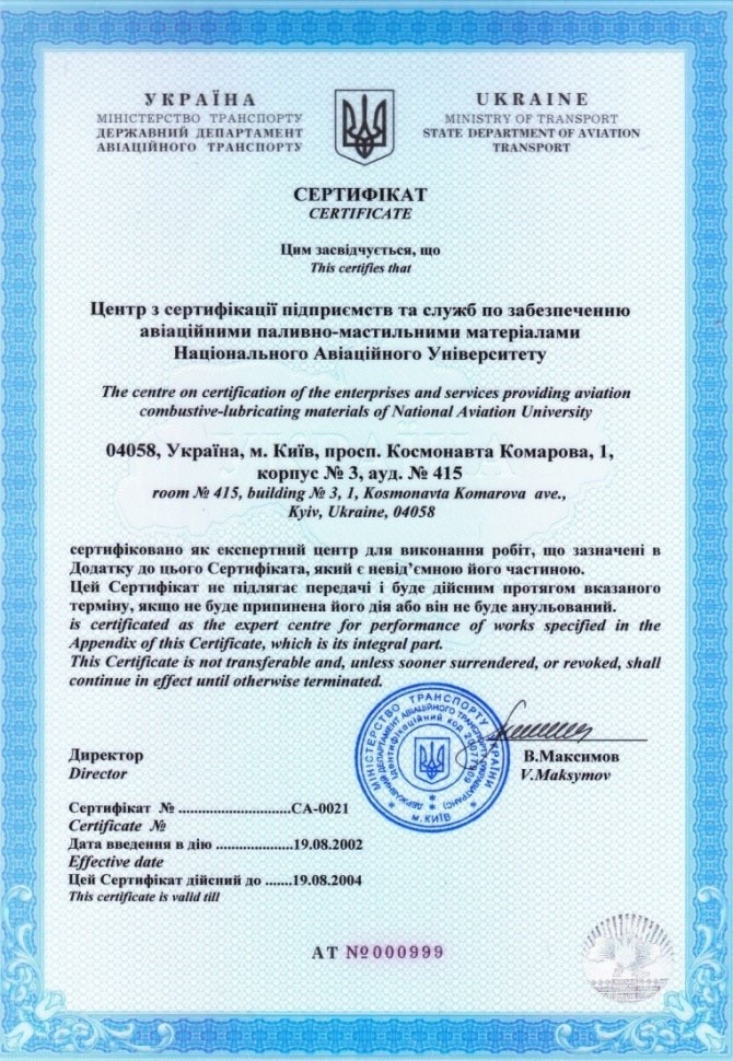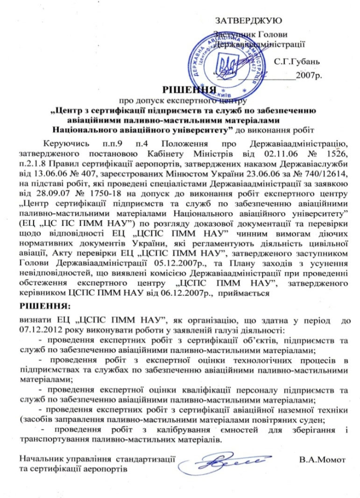 Наказом ректора НАУ №66 /роз від 19.11.2007 р. Центр з сертифікації підприємств та служб по забезпеченню паливно-мастильними матеріалами НАУ (ЦСПС ПММ НАУ), керівник к.т.н. проф. НАУ Пузік С.О. було включено до складу тодішньої лабораторії.
