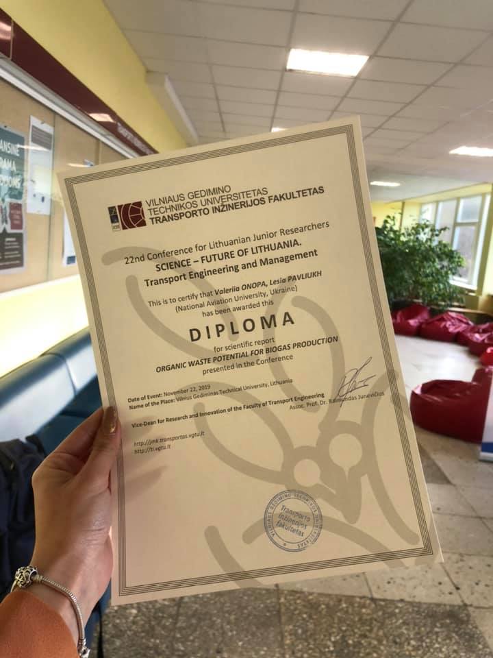 Студенти кафедри екології взяли участь в науковій конференції у Вільнюському технічному університеті ім. Гедимінаса: 22th Conference for Lithuanian Junior Researchers “Science – Future of Lithuania. Transport Engineering and Management, 22-23 November,Vilnius, Lithuania, 2019.