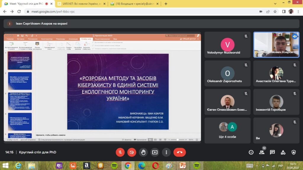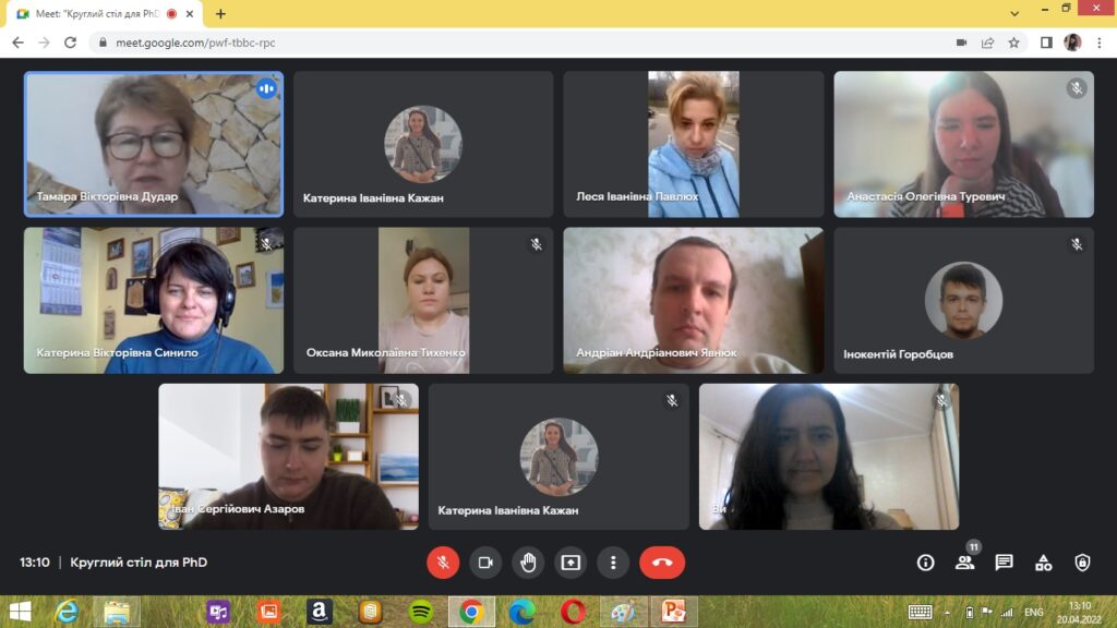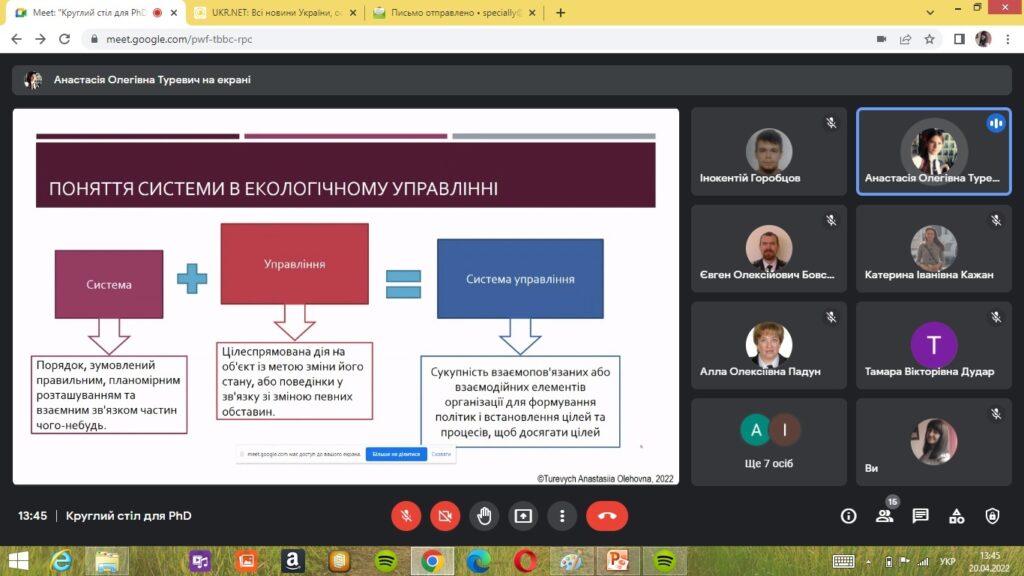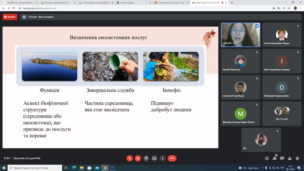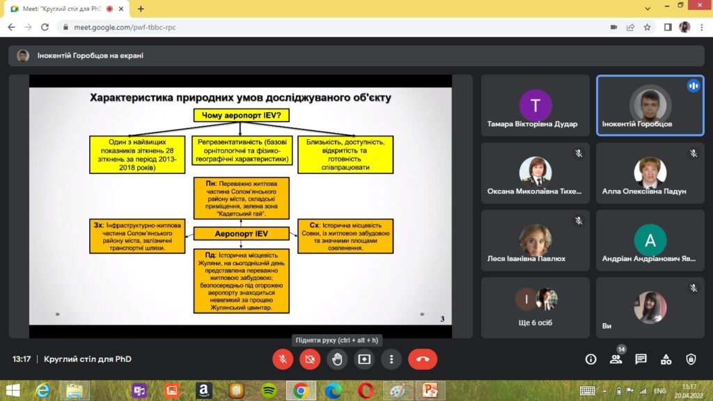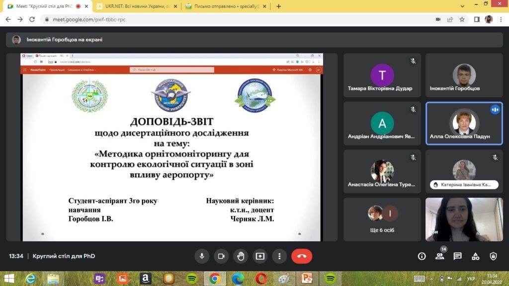 Відповідно до програми круглого столу PhD, які навчаються за ОНП 101 «Екологія» представили доповіді про результати свої наукових досліджень. Виступи аспірантів викликали жваву наукову дискусію учасників круглого столу та отримали важливі рекомендації щодо проведення подальших наукових досліджень.