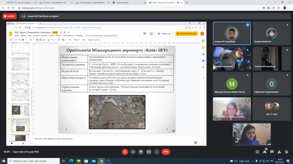 Були представлені наступні доповіді-звіти аспірантів кафедри екології, які навчаються за спеціальністю 101 «Екологія»