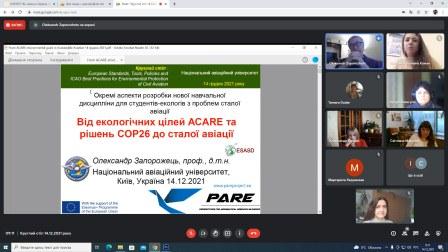 14 грудня 2021 року у Національному авіаційному університеті в межах виконання проекту «European Integration of Environmental Standards for Civil Aviation in the Context of Sustainable Development» (621138-EPP-1-2020-1-UA-EPPJMO-MODULE міжнародної програми Jean Monnet Modules Erasmus+) відбувся Круглий стіл з питань підготовці фахівців-екологів для авіаційної галузі «Про необхідність ознайомлення під час навчання студентів-екологів з сучасною нормативно-технічною документацією з питань забезпечення екологічної безпеки авіаційної галузі».