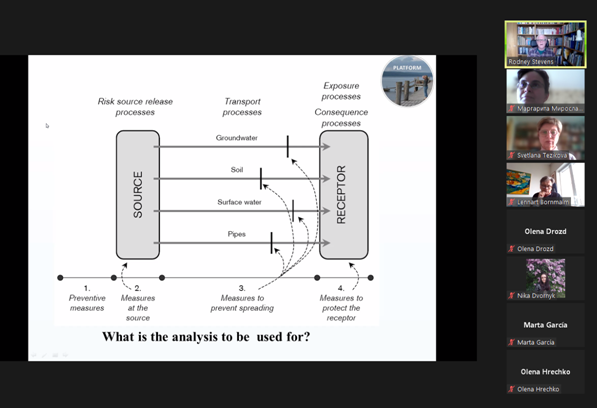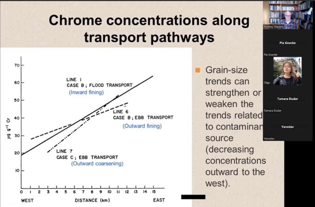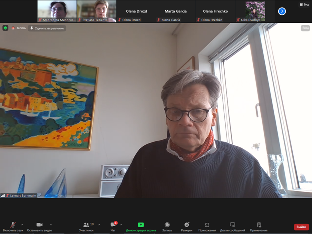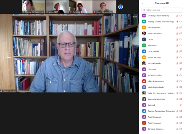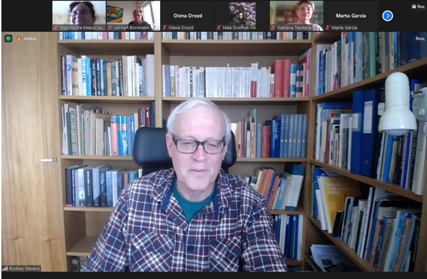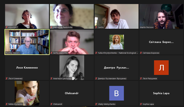 За свою довгу кар’єру проф. Стівенс мав можливість відвідати багато країн, де працював у складі науково-дослідних та дослідно-виробничих груп, які вирішували проблеми будівництва на геологічно ускладнених територіях з урахуванням необхідності обмежити негативні впливи на довкілля. В площині його основних наукових інтересів також лежать питання транспорту забруднень у водному середовищі та їх накопичення у донних відкладах. Цим темам був присвячений курс, відкритий для здобувачів 1-4 курсу кафедри екології, який вони проходили за підтримки завідувача кафедри Дудар Т.В., доцентів Грози В.А. та Радомської М.М. Разом зі своїми колегами-студентами зі Швеції українські студенти прослухали курс лекцій, виконували групові завдання у змішаних групах та представляли отримані результати. Крім професійних знань, здобувачі отримали можливість удосконалити свої мовні навички та розширити досвід міжнаціональної взаємодії. На останній зустрічі учасники від кафедри екології обговорили перспективи спільних науково-дослідних проектів у наступному навчальному семестрі.