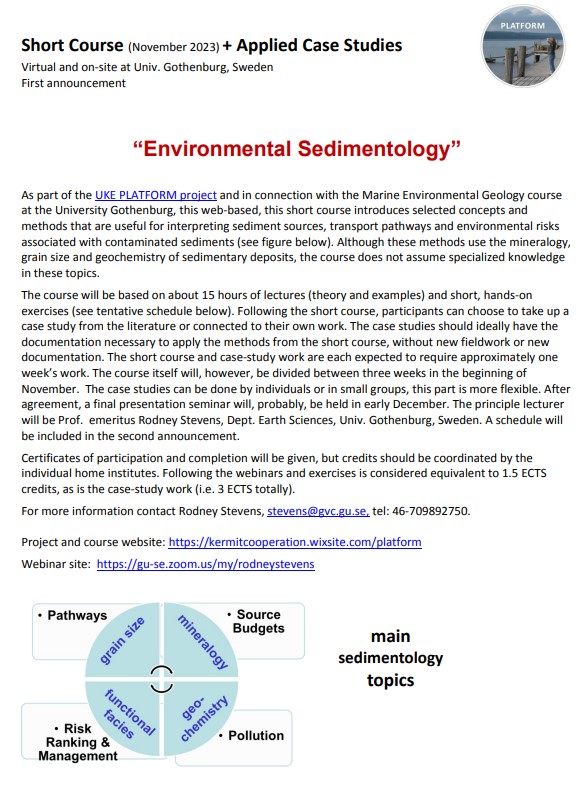 Протягом листопада 2023 року студенти кафедри екології отримали унікальну можливість – долучитись дистанційно до курсу «Environmental sedimentology» від Університету Гетеборга (Швеція) від професора Родні Стівенса (Rodney Steavens).