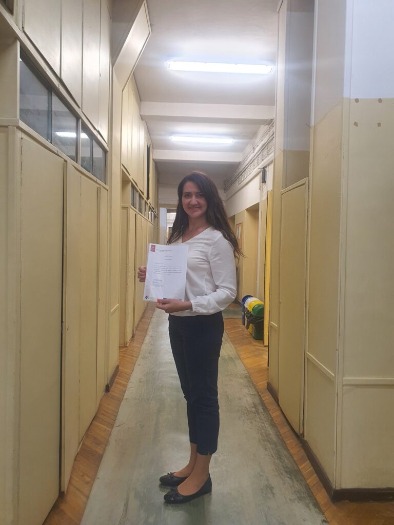 Вітаємо студентку першого курсу магістратури ОПП «Екологія та охорона навколишнього середовища» кафедри екології, Юлію Процак з успішним захистом наукової роботи за темою «Photocatalytic degradation of methanol in visible and ultraviolet light», що була підготовлена на базі Лодзинського технічного університету (м. Лодзь, Польща) під час проходження стажування (у період з 11.2021 року по 01.2022 року) за програмою Erasmus+, під керівництвом науковими дослідженнями професором Томашем Манієцкі та PhD Олександром Штикою.