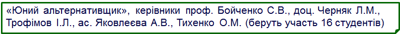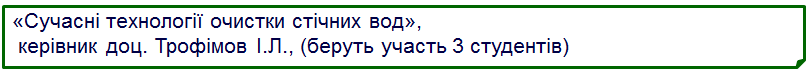 «Екологічна біотехнологія та технічна біоенергетика» Керівник гуртка: Карпенко В. І., доцент, к.б.н.Приймають участь 7 студентів.