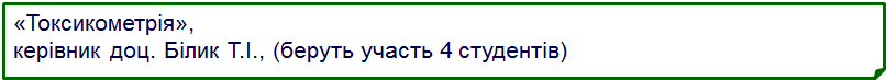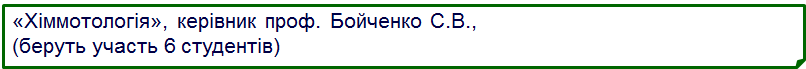 «Імунобіотехнологія»Керівник гуртка: Гаркава К. Г. д.б.н., проф.Приймають участь 12 студентів.