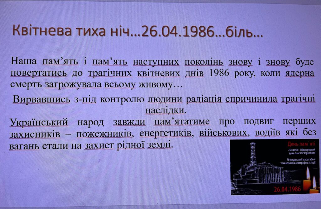 16 квітня відбулась година корпоративної культури в групі ЦБ-106, присвячена річниці з дня Чорнобильської аварії.