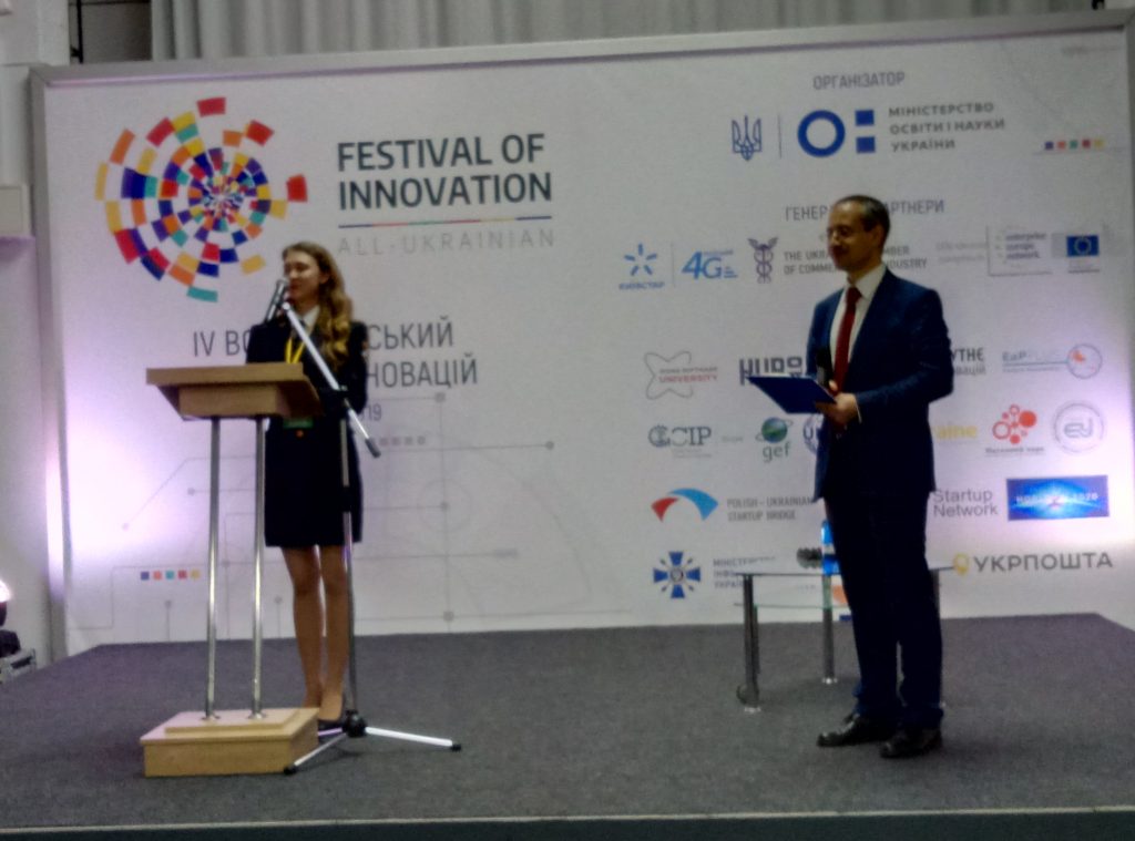 16 травня викладачі та студенти кафедри екології ФЕБІТ прийняли участь у Всеукраїнському фестивалі іновацій, де ними було представлено наукові досягнення викладачів та студентів кафедри екологі. Особливо було відмічено інноваційний проект команди доц. Павлюх Л.І. та студенток 4-го курсу Сиротіної Ірини і Тодорович Олени на тему “Використання альгокультури для очищення стічних вод”. Проект команди було відібрано для участі у Hackaton, що відбудеться уже цього літа. Студентка Фебіт Ірина Сиротіна гідно представила інноваційний проект англійською мовою.