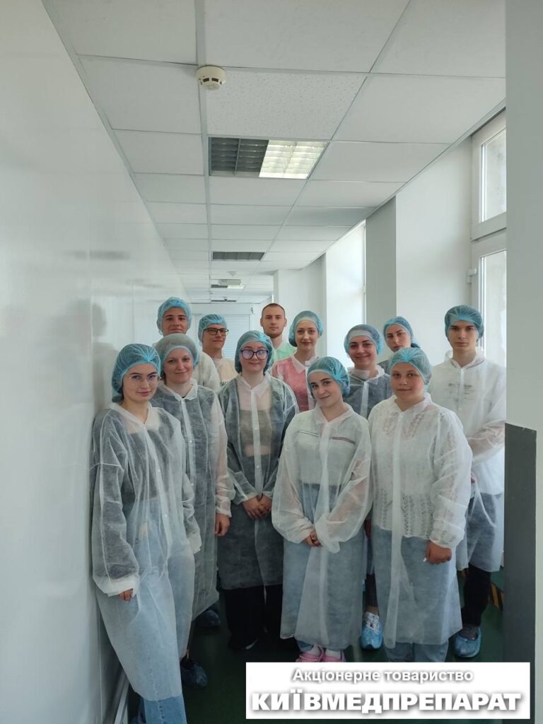 5 червня 2024 року студенти 202-ХТ групи, кафедри хімії і хімічної технології, факультету екологічної безпеки, інженерії та технологій, розом з куратором Кирик Тетяною Іванівною відвідали виробництво «Київмедпрепарат», що входить у велику корпорацію «Артеріум». ПАТ «Київмедпрепарат» – національний лідер із виробництва антибактеріальних препаратів, одне із найбільш масштабних підприємств фармацевтичної промисловості України. Побували на всіх теренах підприємства, побачили виробничий майданчик «Київмедпрепарат», який представлений Цехом твердих форм, де випускаються таблетки і капсули, і Цехом ін’єкційних форм. Також на території заводу розташовані біологічна, санітарна, хімічна і фізико-біологічна лабораторії, які забезпечують контроль якості вхідних матеріалів і готової продукції.