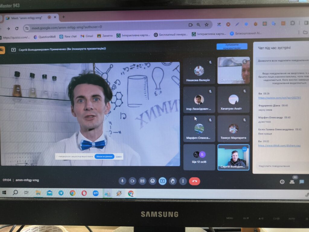 26 лютого кафедрою хімії і хімічної технології було проведено онлайн вебінар з профорієнтації для учнів 11 профільного хімічного класу ліцею у місті Шостка. Під час вебінару відбулася презентація кафедри, хімічний квіз, доповіді доцентів Трофімова І.Л. (“Біопалива”) та Левченка С.В. (“Захист металів від корозії”), а також онлайн екскурсія лабораторіями хімічного корпусу НАУ і огляд цікавих хімічних дослідів у виконанні асистента кафедри Примаченко С.В.