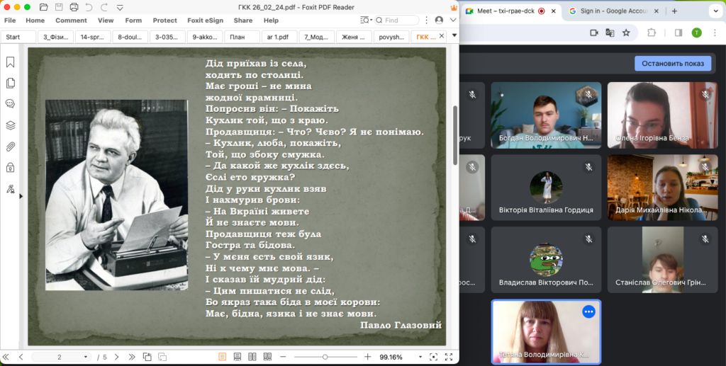 20.02.2024 року здобувачі вищої освіти групи ЦБ-106б, в рамках проведення корпоративної години, ознайомилися з темою: “Здоровий спосіб життя. Принципи здорового способу життя”.