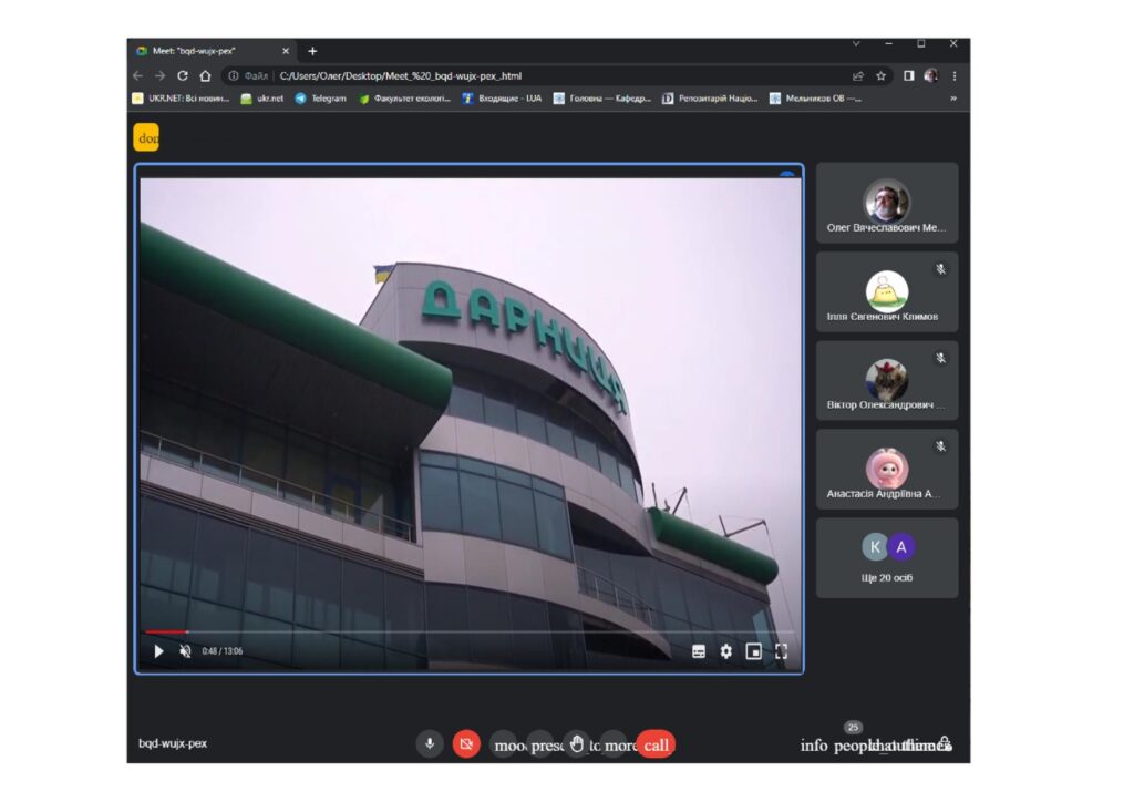 Молоді вчені та здобувачі вищої освіти кафедри екології ФЕБІТ долучилися до обговорення проблеми екоциду на території України під час воєнної агресії. Захід був ініційований Радою молодих учених при МОН України та Верховною Радою України. Основним питанням, що обговорювалось під час зустрічі, була необхідність надати чітке визначення даному терміну і сформувати його кваліфікаційну характеристику у кримінальному праві. На даний момент аналогічні дискусії відбуваються у різних країнах світу та на рівні ЄС. Відповідний злочин визнаний законодавчо лише у кількох країнах, зокрема Франції, Бразилії і В’єтнамі. У травні 2021 року Парламент ЄС провів слухання щодо принципової можливості внесення даного злочину у відповідні нормативні акти. На даний момент «екоцид» не внесено до Римського статуту Міжнародного Кримінального Суду. В свою чергу, Україна досі не ратифікувала цей міжнародний договір, що може створити проблеми під час розгляду злочинів ворожих військ на території України у міжнародному суді.