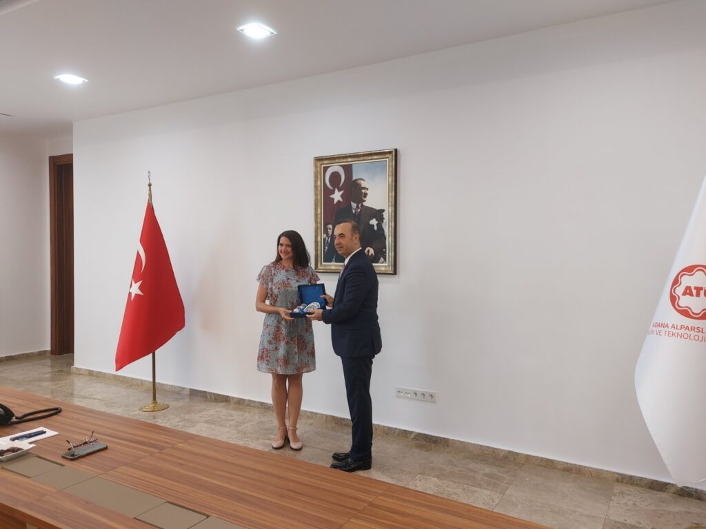З 19 по 23 червня 2023 року доцент кафедри екології ФЕБІТ Черняк Лариса та доцент кафедри цивільної та промислової безпеки ФЕБІТ Синило Катерина НАУ пройшли стажування за програмою ERASMUS+ Staff Mobility for Training в Університеті науки і техніки м. Адана (Туреччина). Учасники програми мали можливість відвідати сучасні лабораторії авіаційного спрямування. Зокрема, лабораторії з досліджень аеродинамічних характеристик повітряних студент та з виробництва БПЛА та інші. Також, мали можливість обмінятися досвідом щодо підготовки сучасних фахівців для авіаційної галузі. Під час зустрічі викладачів НАУ з ректором Аданського університету науки і техніки було узгоджено перспективи подальшої співпраці з турецькими колегами з питань навчальної та наукової діяльності.