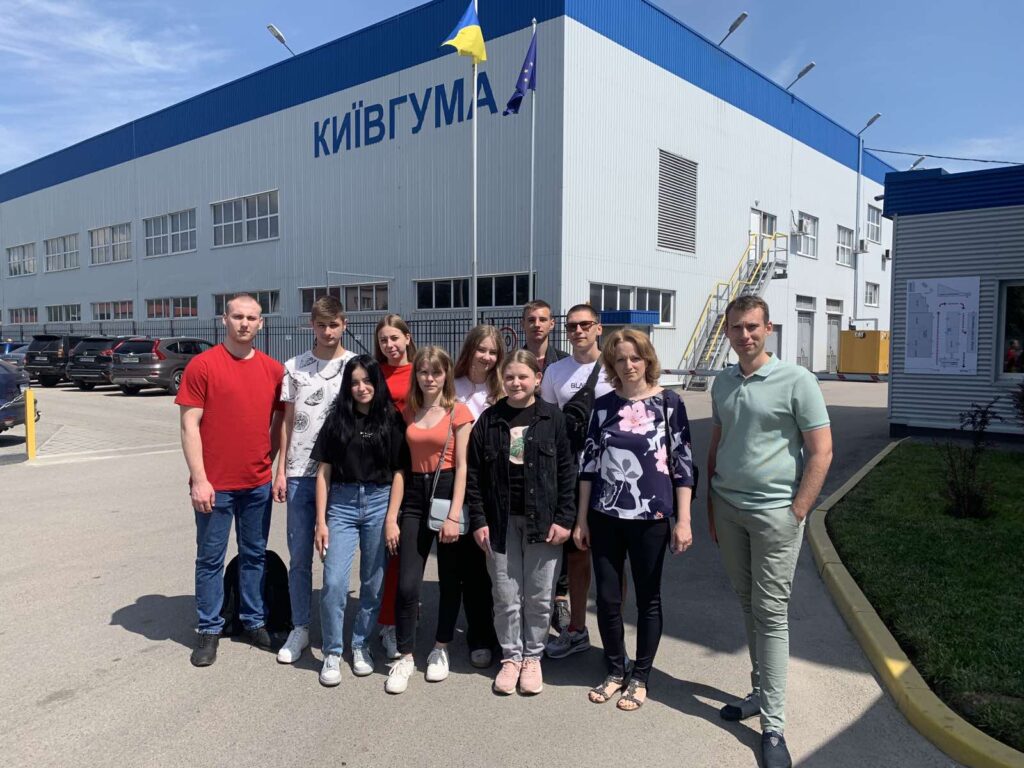 14 червня 2023 року студенти 102-ХТ групи, кафедри хімії і хімічної технології НАУ спеціальності 161 «Хімічні технології та інженерія», ОПП «Хімічні технології лікарських речовин та медичних виробів», разом з керівником практики Кирик Тетяною Іванівною відвідали завод «КИЇВГУМА».