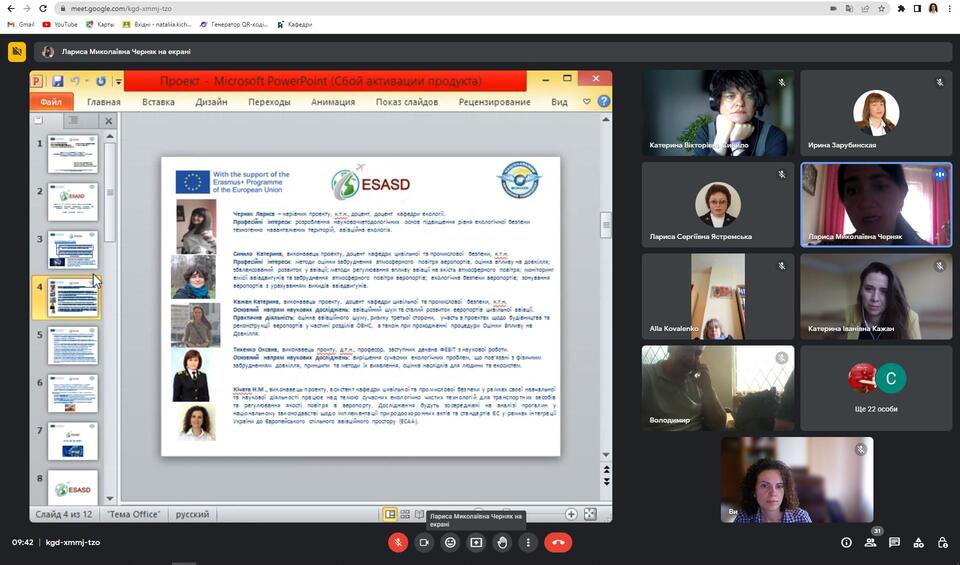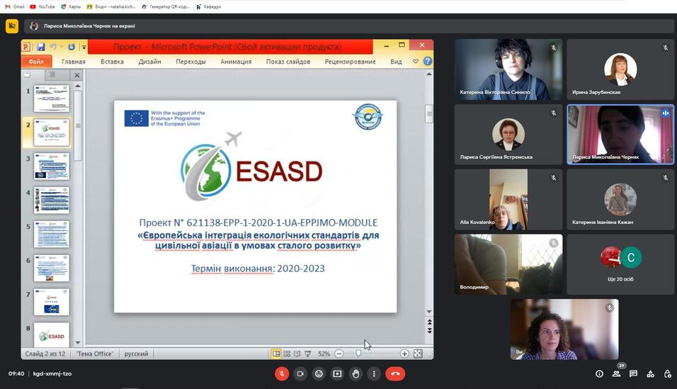 23-30 травня 2023 року в межах виконання проекту Модуль Жана Моне «Європейська інтеграція екологічних стандартів для цивільної авіації в контексті сталого розвитку» N°621138-EPP-1-2020-1-UA-EPPJMO-MODULE (2020-2023) за підтримки Програми Єразмус + Європейського Союзу відбувся тренінг “Аналіз здобутків та прогалин законодавства України в частині євроінтеграції екологічних стандартів для цивільної авіації“. Участь у тренінгу взяли представники Національного авіаційного університету та інших ЗВО, Державної авіаційної служби, аеропортів, авіакомпаній, галузевих експертів та інші зацікавлені сторони у секторі Цивільної авіації та сталого розвитку.