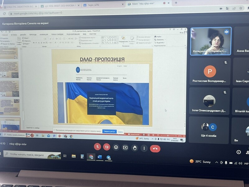31 травня 2023 року відбулася година корпоративної культури для групи ЦПБ-105 (спеціальність – 263 ««Захист об’єктів критичної інфраструктури») на тему: «Єдність у різноманітті – Європейські Цінності». Наставник групи Синило К.В. представила презентацію, яка була присвячена культурним, економічним, соціальним та науковим пріоритетам Європейського союзу.