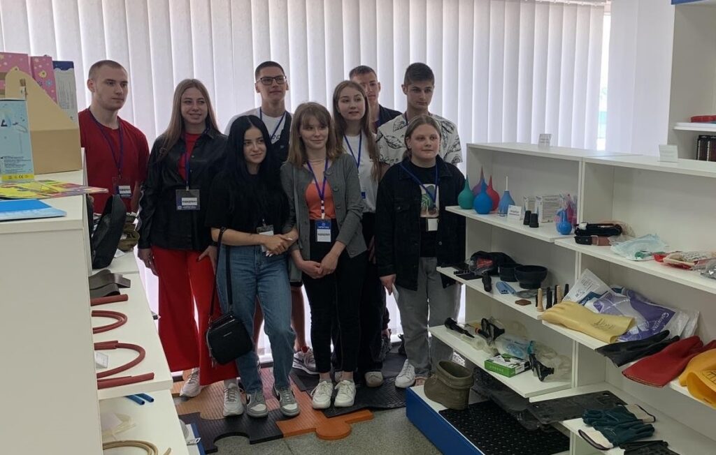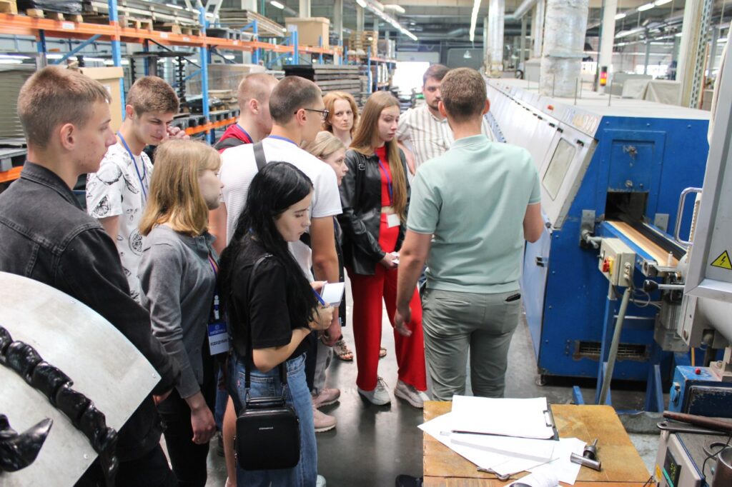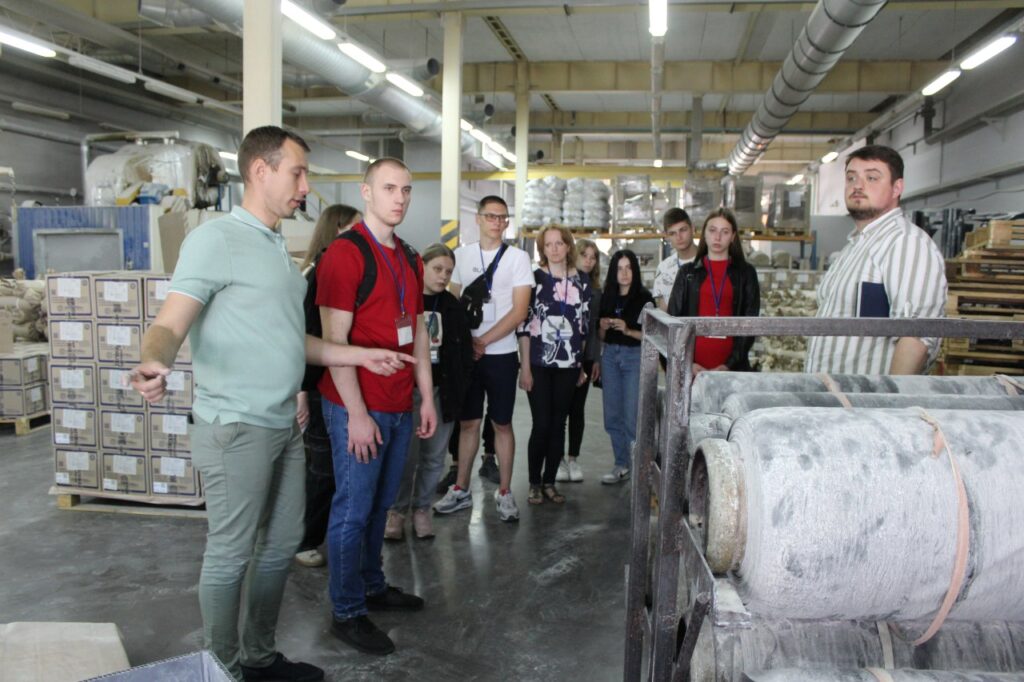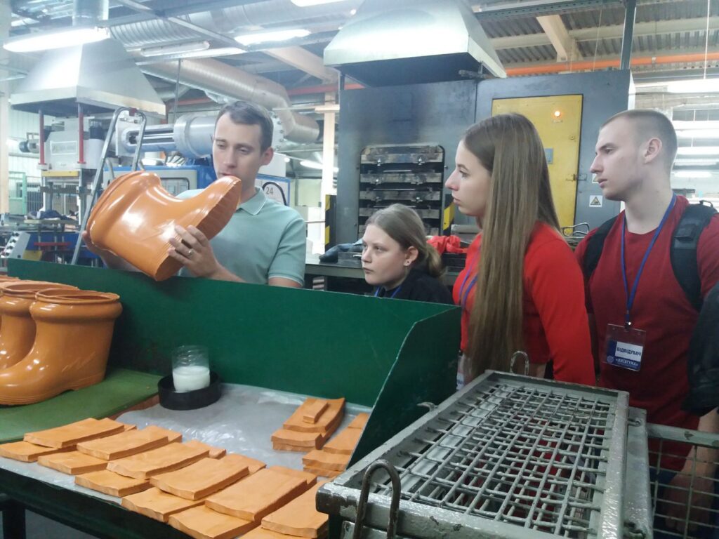 Екскурсію виробництвом провів начальник Лабораторії фізико-механічних та хіміко-аналітичних випробувань матеріалів Дмитро Бормотов. Тож студенти мали можливість з перших уст дізнатися про тонкощі роботи як підприємства «КИЇВГУМА» загалом, так і випробувальної лабораторії. Студенти побувати у виробничих цехах (з різними ділянками виробництва), проектно-конструкторському відділі, лабораторії фізико-механічних і хіміко-аналітичних випробувань, ознайомилися з сучасним обладнанням підприємства.