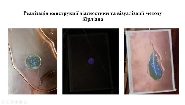 Юровицького Андрія Михайловича – тема дисертації «Метод і засіб оцінювання психофізіологічного стану за енергетичними параметрами операторів льотного складу» . Під час доповіді викладена основа майбутньої дисертації – дослідити і підтвердити принципи, що аура (енергетичне поле) людини може бути джерелом інформації для діагностування стану гомеостазу з розробкою та застосуванням експериментального зразка пристрою для проведення досліджень.
