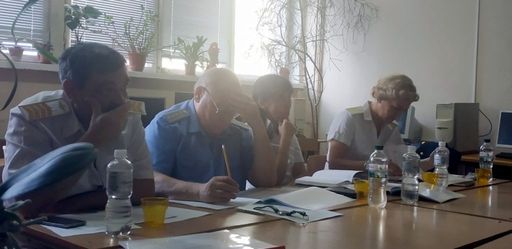 Екзаменаційна комісія працює під головуванням начальника відділу навчально-бойової та спеціальної підготовки Головного управління воєнізованої охорони АТ «Укрзалізниця», д.т.н. Кацмана Михайла Давидовича. На захист представлені роботи, присвячені актуальним питанням цивільного захисту.