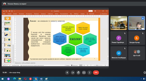У рамках профорієнтаційної роботи асистентом кафедри екології факультету екологічної безпеки, інженерії та технологій Оксаною Володимирівною Лапань була проведена зустріч зі школярами Природничо-наукового ліцею № 145 міста Києва.