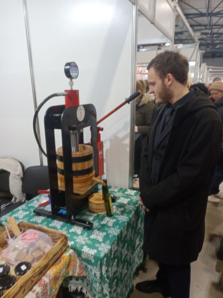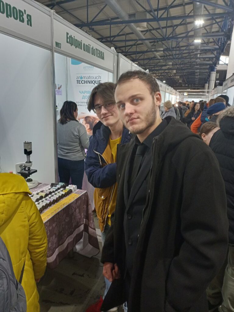 У рамках вивчення дисципліни “Біотехнології лікувально-косметичних засобів” здобувачі вищої освіти англомовної групи 3 курсу Дмитро Булюк та Іван Воробйов, разом зі старшим викладачем кафедри біотехнології Анною Дражніковою, відвідали виставку ECO-EXPO, де були представлені натуральні косметичні засоби, харчові продукти та інші вироби. Студенти мали чудову можливість поспілкуватися з представниками компаній-виробників, фахівцями-практиками та дистриб’юторами готової продукції. На виставці майбутні біотехнологи знайомились з особливостями роботи пресів холодного віджиму для отримання олій, технологіями виробництва дієтичних добавок, гідролатів, ферментованих напоїв та крафтових сирів. Особливу увагу привернуло застосування продуктів бджільництва у космецевтиці.