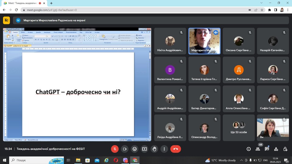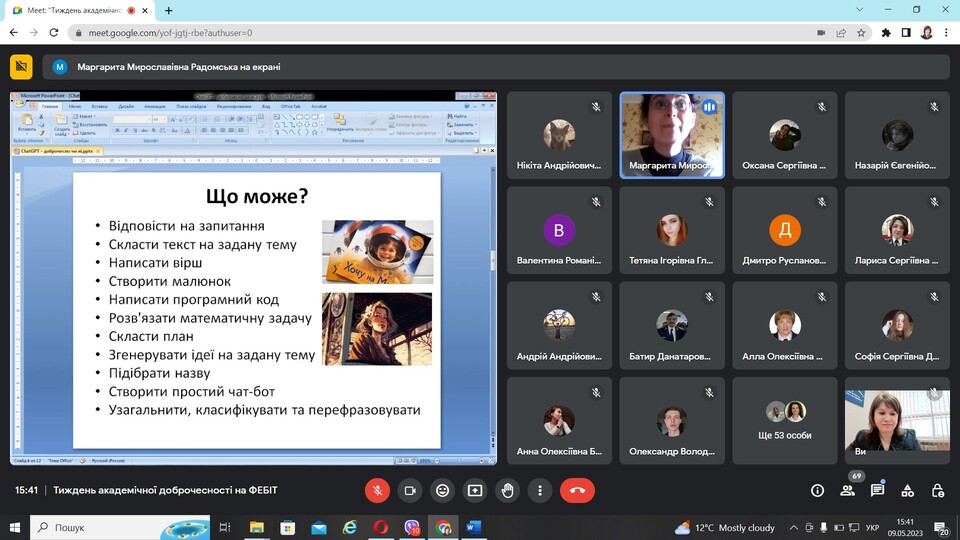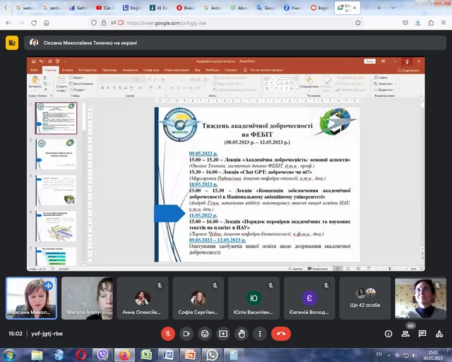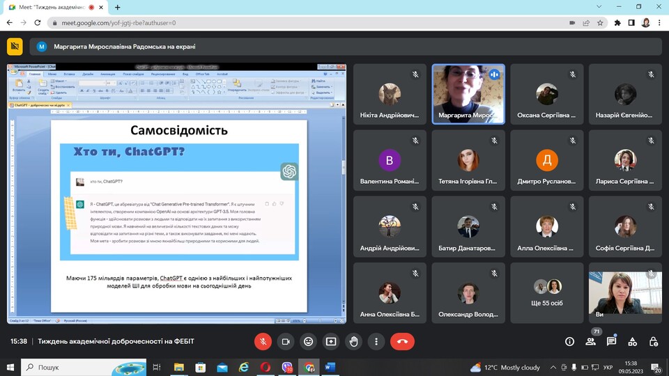 «Chat GPT: доброчесно чи ні?» (спікер – Маргарита Радомська, доцент кафедри екології, к.т.н., доц.);