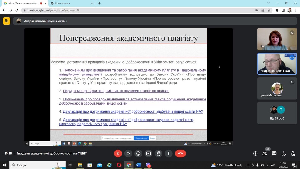 «Концепція забезпечення академічної доброчесності в Національному авіаційному університеті» (спікер – Андрій Гізун, начальник відділу моніторингу якості вищої освіти НАУ, к.т.н, доц.);