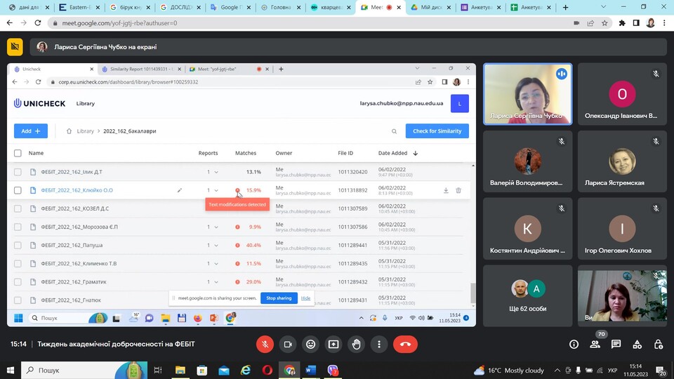«Порядок перевірки академічних та наукових текстів на плагіат в НАУ» (спікер – Лариса Чубко, доцент кафедри біотехнології, к.ф-м.н., доц.).