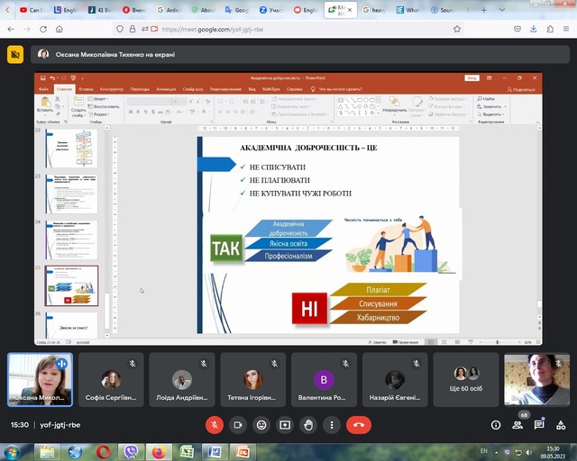 Як здобувачі освіти, так і викладачі, які брали участь у вебінарах, жваво обговорювали питання академічної доброчесності, що в чергове засвідчило важливість цього питання і активний прогрес у формуванні культури навчальної та наукової етики в умовах сучасного світу, який так швидко змінюється.