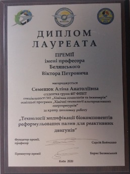 06 липня 2020 року відбувся випуск студентів-бакалаврів спеціальності «Хімічні технології та інженерія» нашого Факультету. З вітальним словом до випускників, батьків і звернулась проректор університету професор Оксана Вовк, побажала випускникам високих досягнень, особистого щастя та зауважила, що НАУ завжди буде чекати їх у рідних стінах.З теплими побажаннями до випускників також звернулася директор Інституту новітніх технологій та міжнародного співробітництва Катерина Бабікова, яка висловила надію на подальшу плідну співпрацю з сьогоднішніми випускниками. Звертаючись до присутніх, декан факультету Сергій Бойченко, зазначив, що випуск – це завжди хвилююча, щаслива і одночасно сумна подія. Адже чотири останні роки студенти, викладачі та адміністрація разом творили історію факультету та університету!Заступник декана Валентина Гроза за участі завідувача кафедри хімії і хімічної технології Віталієм Чумаком вручили випускникам їх дипломи, спроводжуючи привітання теплими словами та побажаннями!. У кожному слові звучала гордість з нотками суму за тими, хто полишає стіни рідного університету.Декан факультету та заступник декана Анна Яковлєва вручили випускникам низку грамот від ректора НАУ за перемоги у конкурсі-огляді на кращу дипломну роботу та подяк за активну участь у науковому та студентському житті університету!Вже другий рік поспіль особливою та унікальною подією стало вручення премії за кращу дипломну роботу ім. професора В.П. Белянського. Ця премія започаткована для студентів-випускників освітньої програми «Хімічні технології альтернативних енергоресурсів» з метою відзначення та підтримки талановитої молоді нашого факультету. Цього року Лауреатом Премії стала студентка групи АП 407 – Семенюк Аліна. Для вручення Премії на церемоніаду завітав давній друг і партнер факультету, промоутер цієї Премії – Борис Белянський. Також номінант традиційно отримала цінні подарунки від співзасновника Премії – директора Українського науково-дослідного та навчального центу хіммотології та сертифікації Ірини Шкільнюк. Випускники також подякували викладачам кафедрі та адмінстрації факультету за тепло, за професійне становлення та турботу, пообіцяли залишатися з НАУ в статусі зовнішніх стейкхолдерів. У добру путь, дорогі наші студенти. Ческаємо Вас на опануванні ОС “Магістр”.