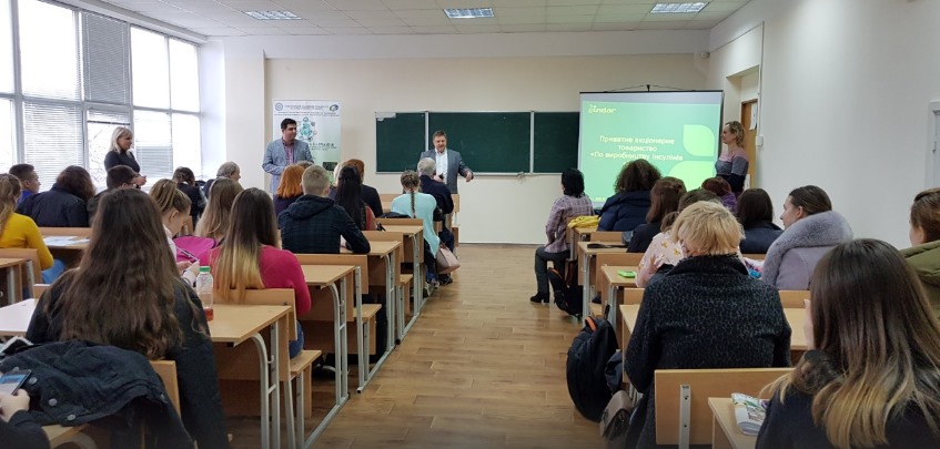 Друзі! Ми завершили «Дні науки ФЕБІТ» (9-20.11.2019), що були присвячені Всесвітньому дню науки в ім’я миру та розвитку ще одним яскравим заходом! Згідно ПРОГРАМИ заходів 20.11.2019 р. кафедрою біотехнології було організовано та проведено Фестиваль фармацевтичного працедавця. Головним гравцем на ринку праці в цей день для наших студентів виступила фармацевтична фірма “Індер”. Модератором заходу був завідувач кафедри Барановський М.М. Велика подяка представникам фірми “Індер” за змістовні презентації та корисну інформацію. Відмінною рисою заходу було те, що обговорення відбувалось в теплій невимушеній атмосфері з проявом глибокого інтересу до інформації наших стейкхолдерів. Нехай торжествує НАУКА в ім’я МИРУ, РОЗВИТКУ та ПРОГРЕСУ суспільства.