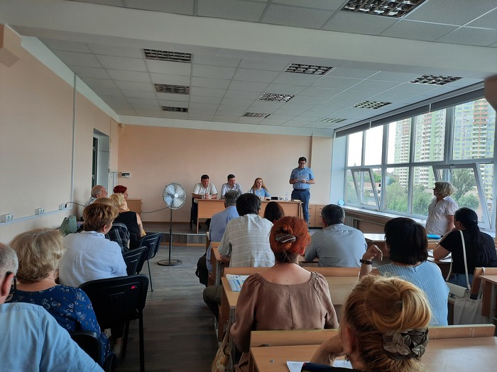21 червня 2022 року на Факультеті екологічної безпеки, інженерії та технологій (ФЕБІТ) Національного авіаційного університету відбулися збори трудового колективу за участі ректора Максима Луцького, проректора з інноваційного навчання та інформатизації Олексія Михальченка та начальника відділу управління кадрами та документообігом Сергія Бондарчука.