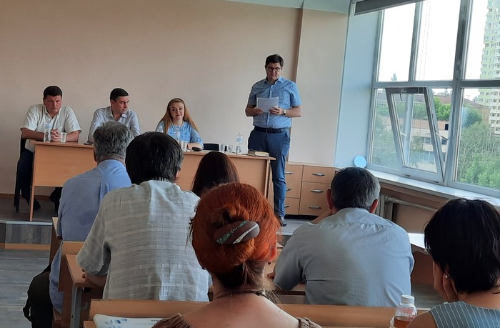 До колективу ФЕБІТ з вітальним словом звернувся ректор НАУ Максим Луцький. Сергій Бондарчук ознайомив присутніх з рекомендацією ректора НАУ стосовно кандидатури на посаду декана Факультету екологічної безпеки, інженерії та технологій Матвєєву Ірину Валеріївну, яка презентувала співробітникам факультету план з подальшими напрямами розвитку діяльності підрозділу.