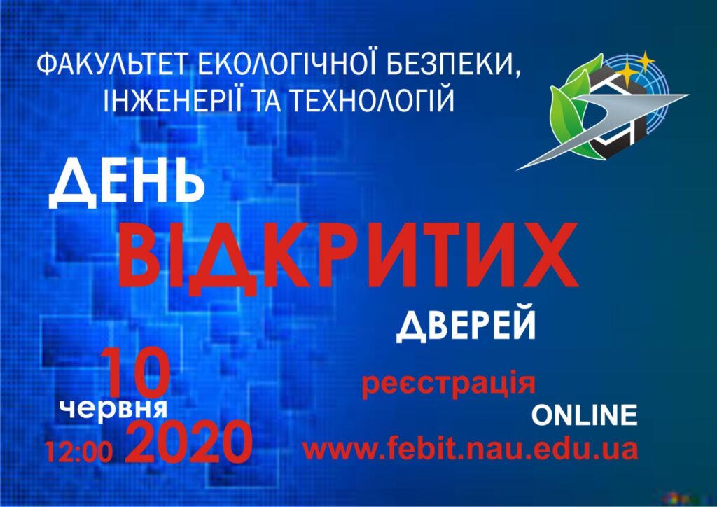 Факультет екологічної безпеки, інженерії та технологій запрошує вас на День відкритих дверей, що відбудеться 10 червня 2020 року о 12:00 у онлайн-форматі на платформі МЕЕТ. https://meet.google.com/kub-xsxn-wrr