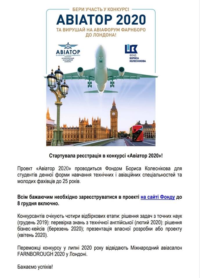 › Конкурс “Авіатор-2020”