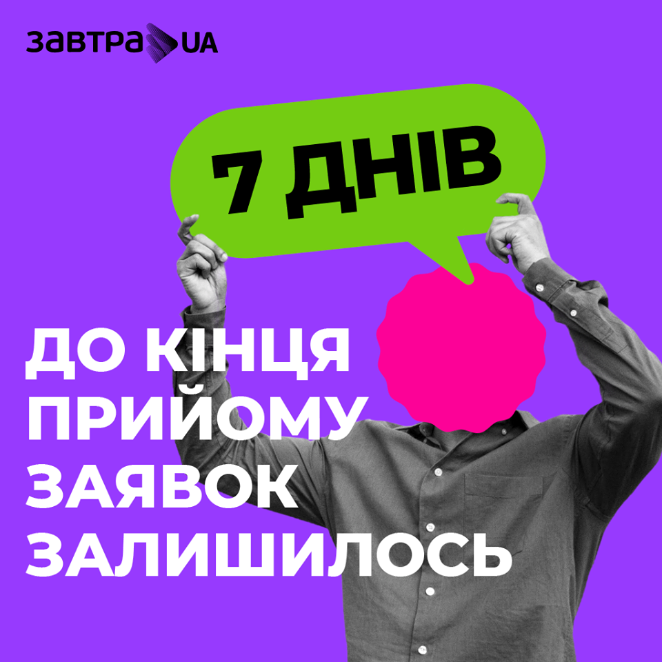 Друзі, вже за тиждень завершується прийом заявок на участь у конкурсі стипендіальної програми «Завтра.UA».