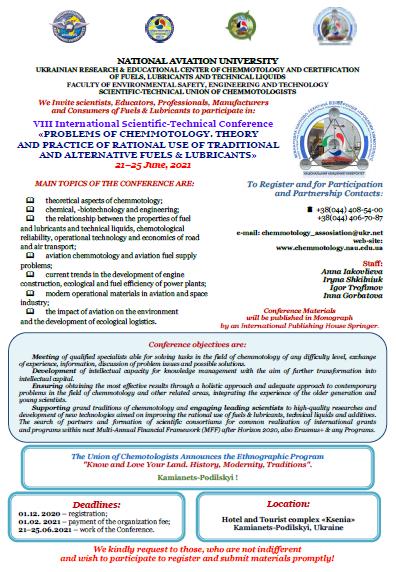 VIII International Scientific-Technical Conference «PROBLEMS OF CHEMMOTOLOGY. THEORY AND PRACTICE OF RATIONAL USE OF TRADITIONAL AND ALTERNATIVE FUELS & LUBRICANTS»
